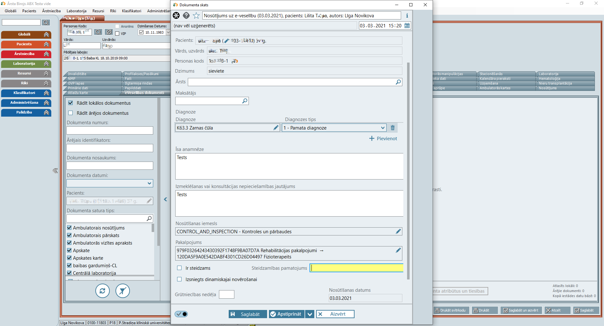 Jaunā funkcionalitāte ir pieejama, sākot ar ĀB 5.28 versiju. E-nosūtījumu var veidot ārstu-speciālistu konsultāciju saņemšanai, diagnostikas izmeklējumu veikšanai un citu ambulatoro un dienas stacionāra (slimnīcās) pakalpojumu saņemšanai. E-nosūtījumu nevar veidot laboratoriskajiem izmeklējumiem un veselības aprūpes saņemšanai mājās. Bez nosūtījuma var doties pie tiešās pieejamības speciālistiem, piemēram, ginekologa, pediatra vai oftalmologa.*